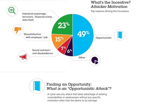 Throughout my career, I have spoken to many professionals who do not take security seriously, they always argue “Who on earth would target my company (or me)? We are nobody!”. Well, maybe that is true, but you need to bear-in-mind that almost 50% of hacks are opportunistic attacks (Fig 2), so even if no one is targeting you specifically, you and your company are still at serious risk.